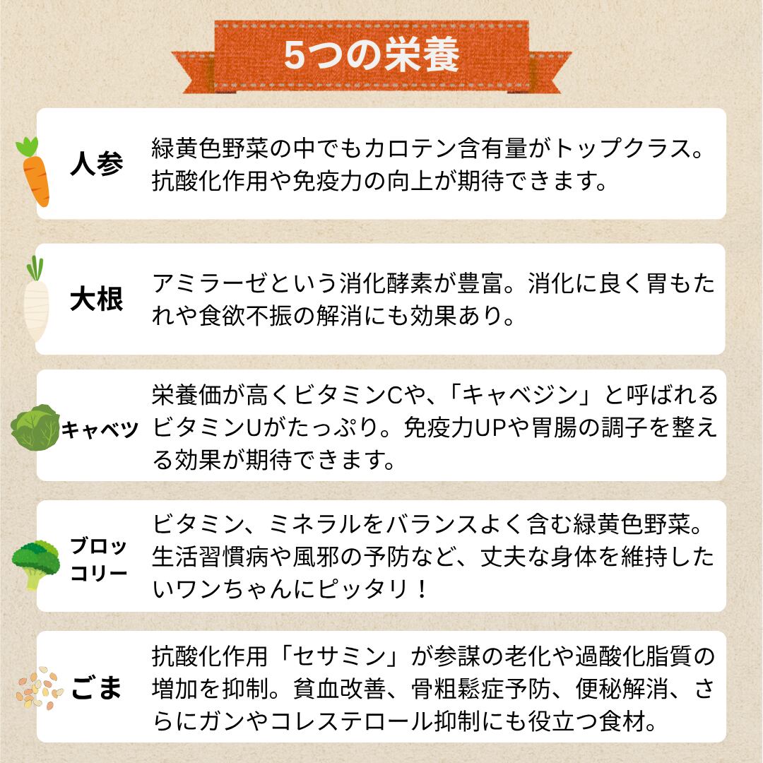 ・原材料名:人参、大根、キャベツ、ブロッコリー、いりごま