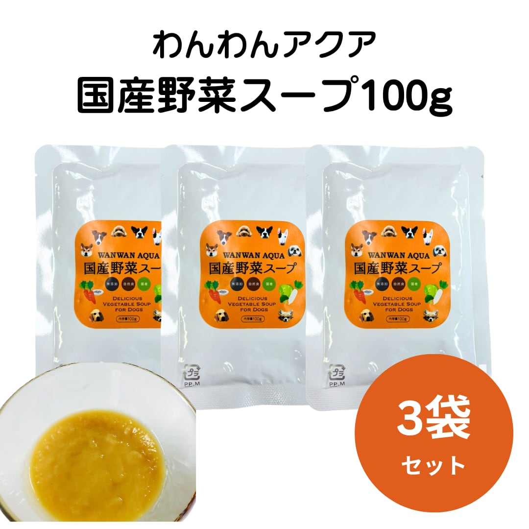 【送料無料】わんわんアクア 国産野菜スープ 3袋セット(犬用(共食可能)野菜スープ)※ゆうパケット